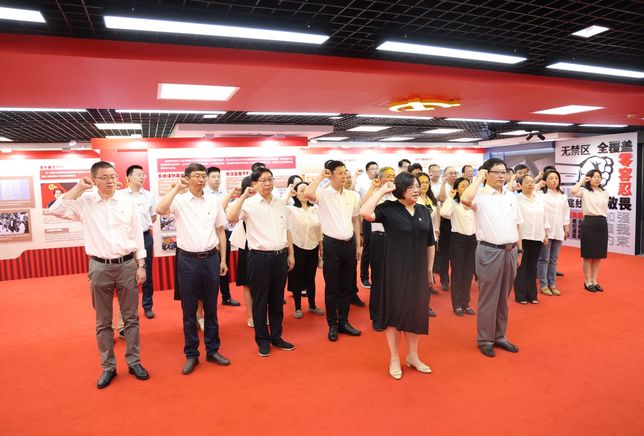 展览共分为六个篇章,以图文、视频、实物等多种形式,深刻阐述习近平总书记关于国资央企重要指示批示精神和党的纪律建设的重要论述,全面阐释《中国共产党纪律处分条例》(以下简称《条例》)各项内容,集中展示了国资委党委在加强党的纪律建设、推进全面从严治党方面的做法和成效。在展览现场,中国钢研党员干部认真听取讲解,深入学习领会,仔细观看近年来国资委机关和中央企业发生的违规违纪案例,深刻反思,汲取教训,进一步增强了对党纪国法的敬畏之心。最后,在集团公司党委常委、纪委书记雷建容的带领下,所有参展党员集体重温入党誓词。