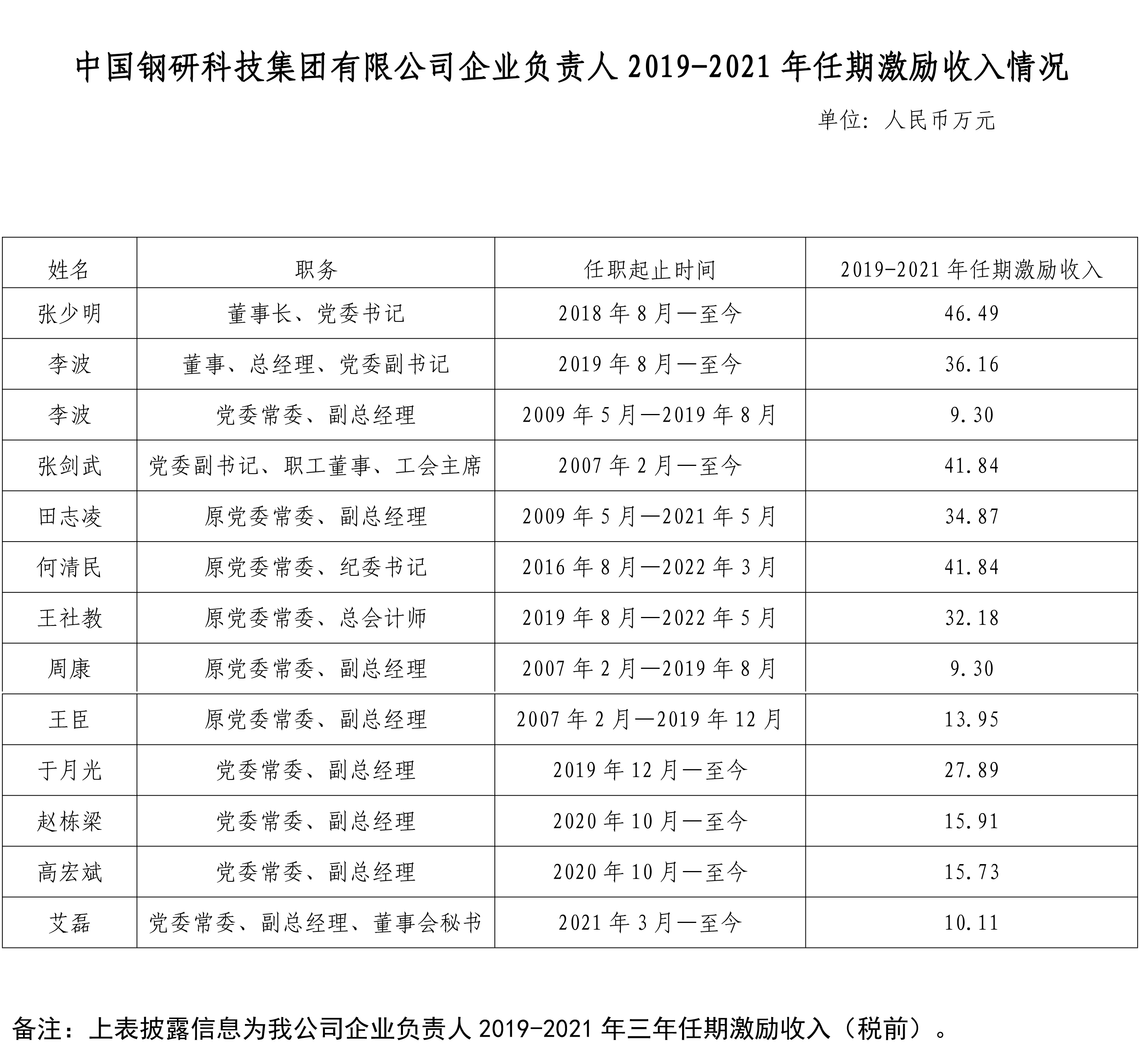 中国钢研科技集团有限公司企业负责人 2019-2021 年任期激励收入情况 分享到 中国钢研科技集团有限公司企业负责人 2019-2021 年任期激励收入情况 上一篇中国钢研科技集团有限公司企业负责人 2022 年度薪酬情况 下一篇中国钢研科技集团有限公司企业负责人 2021 年度薪酬情况