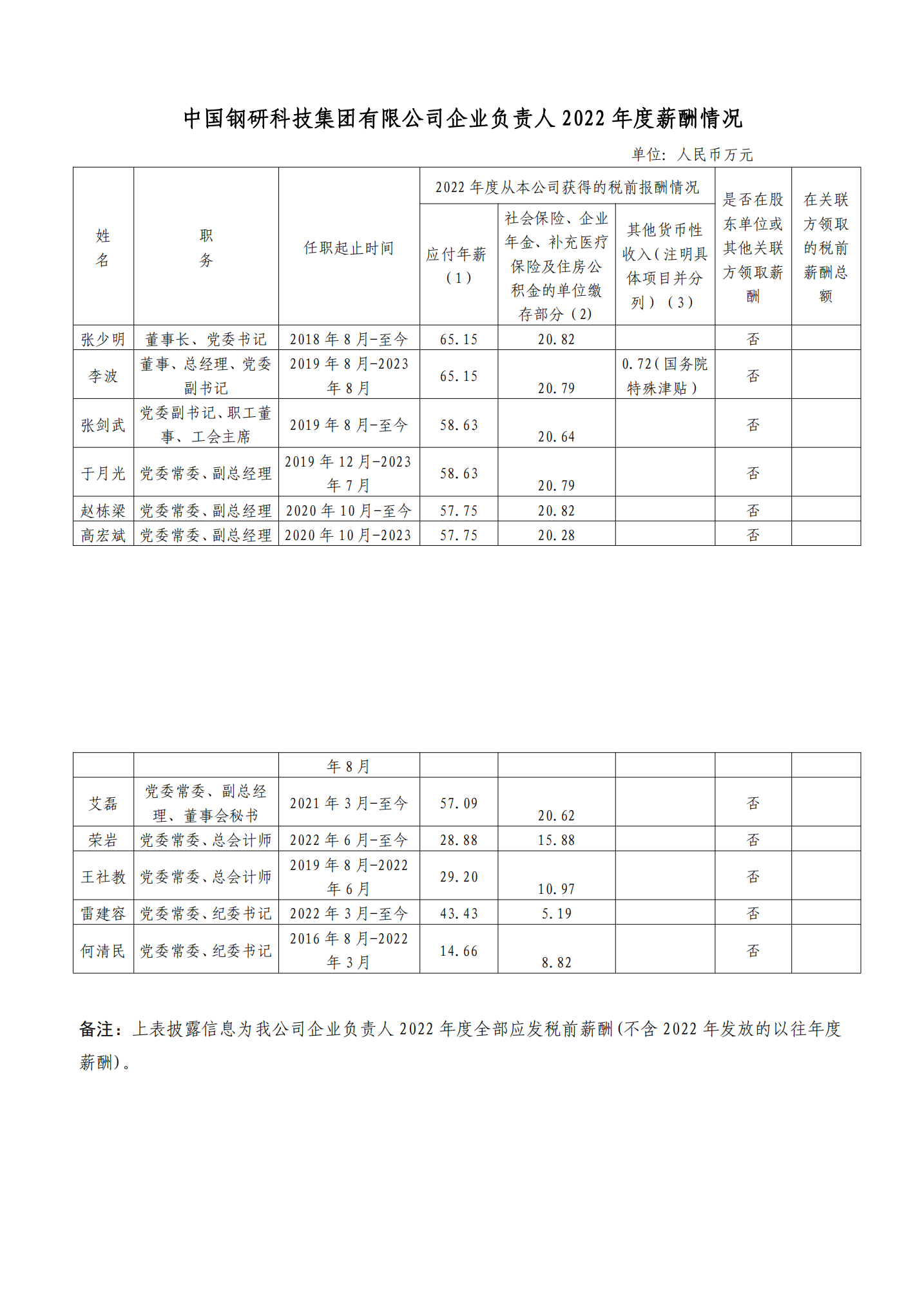 中国钢研科技集团有限公司企业负责人 2022 年度薪酬情况 分享到 中国钢研科技集团有限公司企业负责人 2022 年度薪酬情况 上一篇中国钢研拟推荐制造业单项冠军企业名单 下一篇中国钢研科技集团有限公司企业负责人 2019-2021 年任期激励收入情况