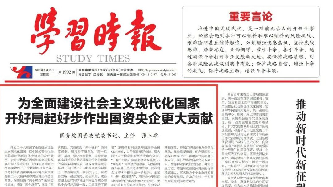 国务院国资委党委书记、主任张玉卓:为全面建设社会主义现代化国家开好局起好步作出国资央企更大贡献